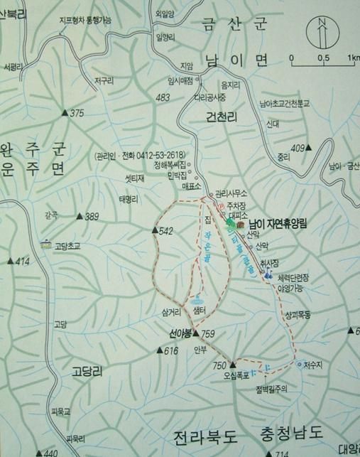 ① 금산산림문화타운 관리사무소 /남이자연휴양림 관리사무소 - 옆 데크계단 - 선야봉 정상(1.8km) - 신선봉(0.9km) ※2.7km