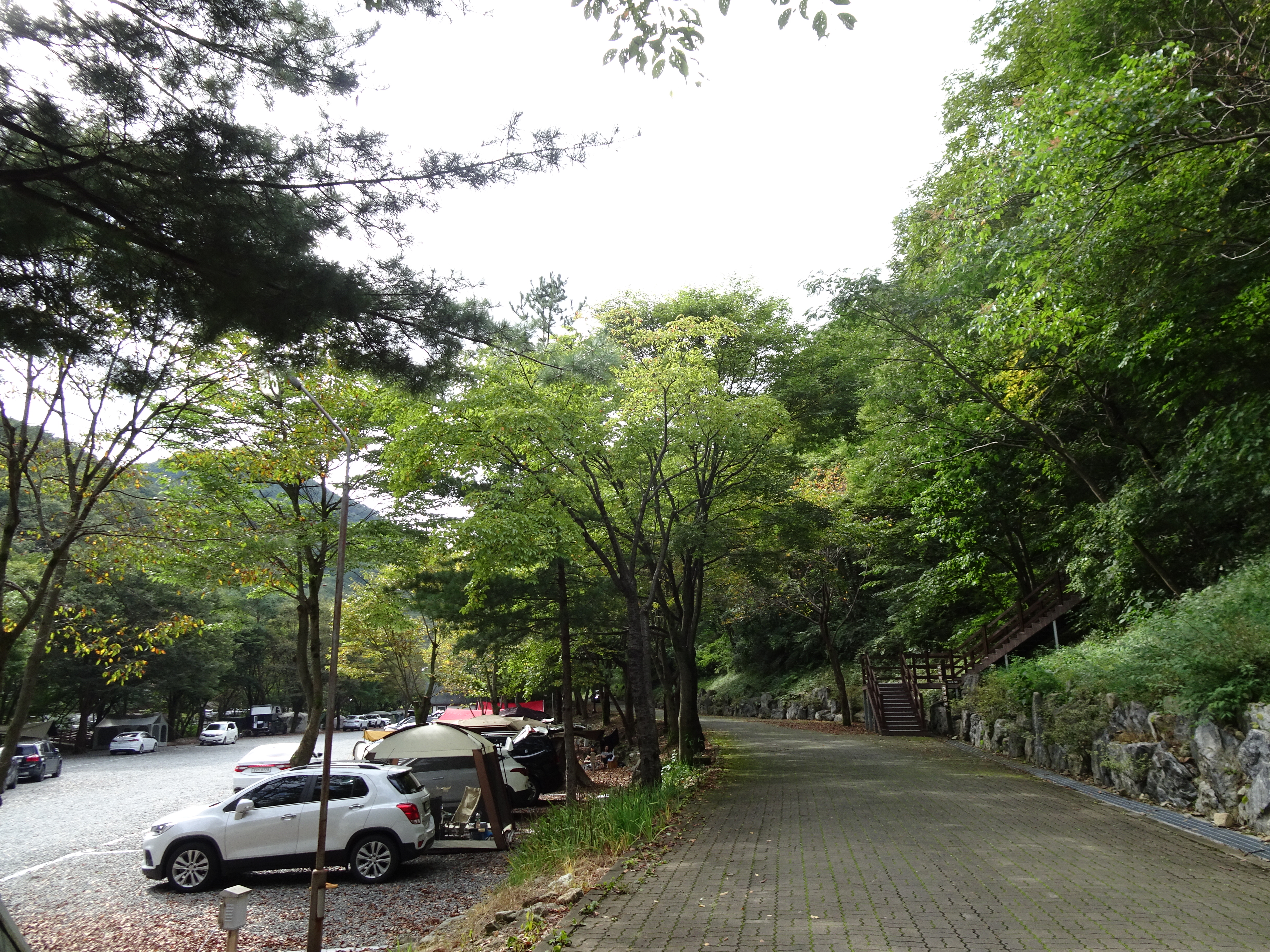 오토캠핑장 오른쪽에 선야봉 들머리인 데크계단이 보인다.