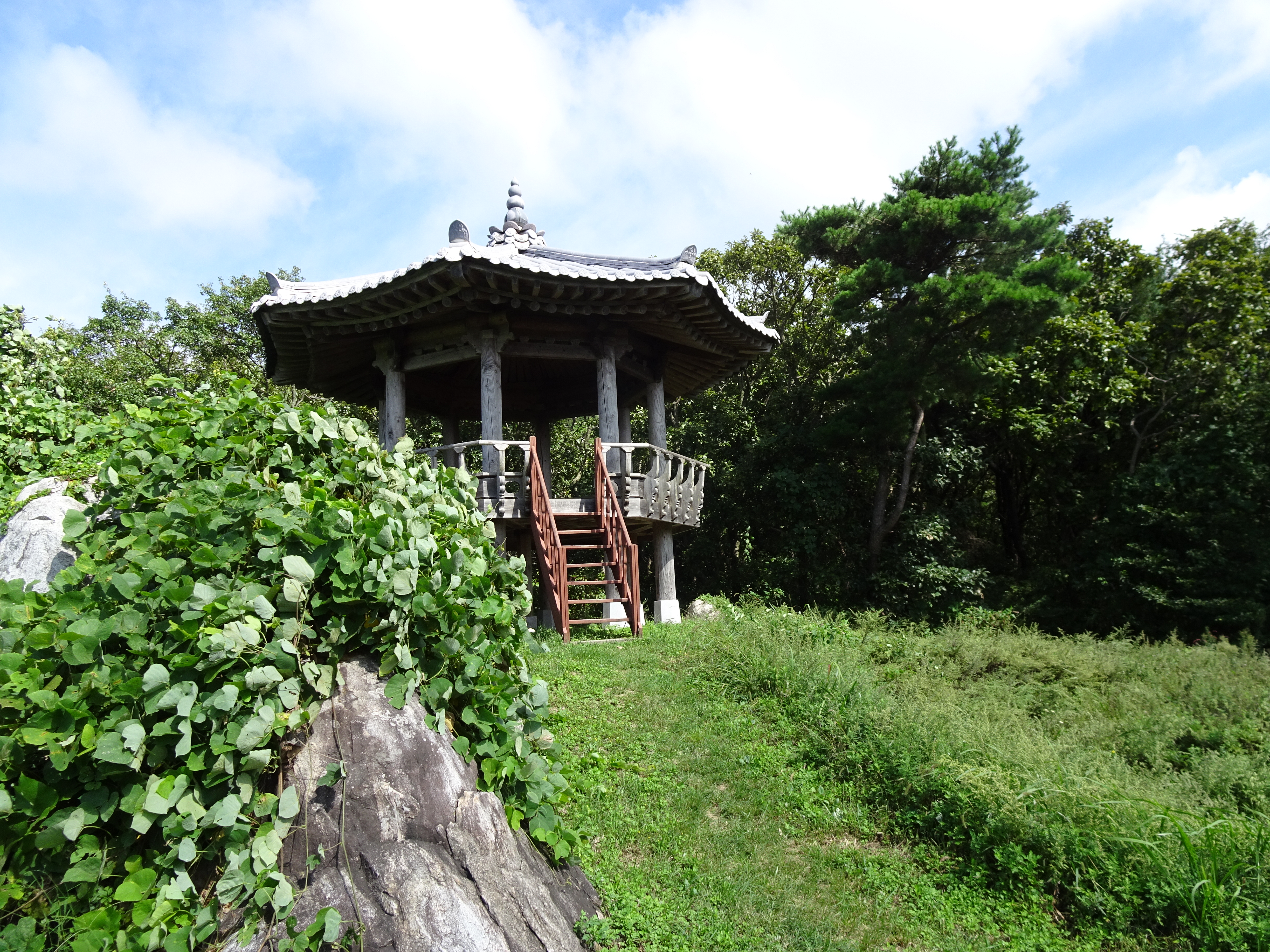 사람이 없어서 정자에서 점심을 먹는다.