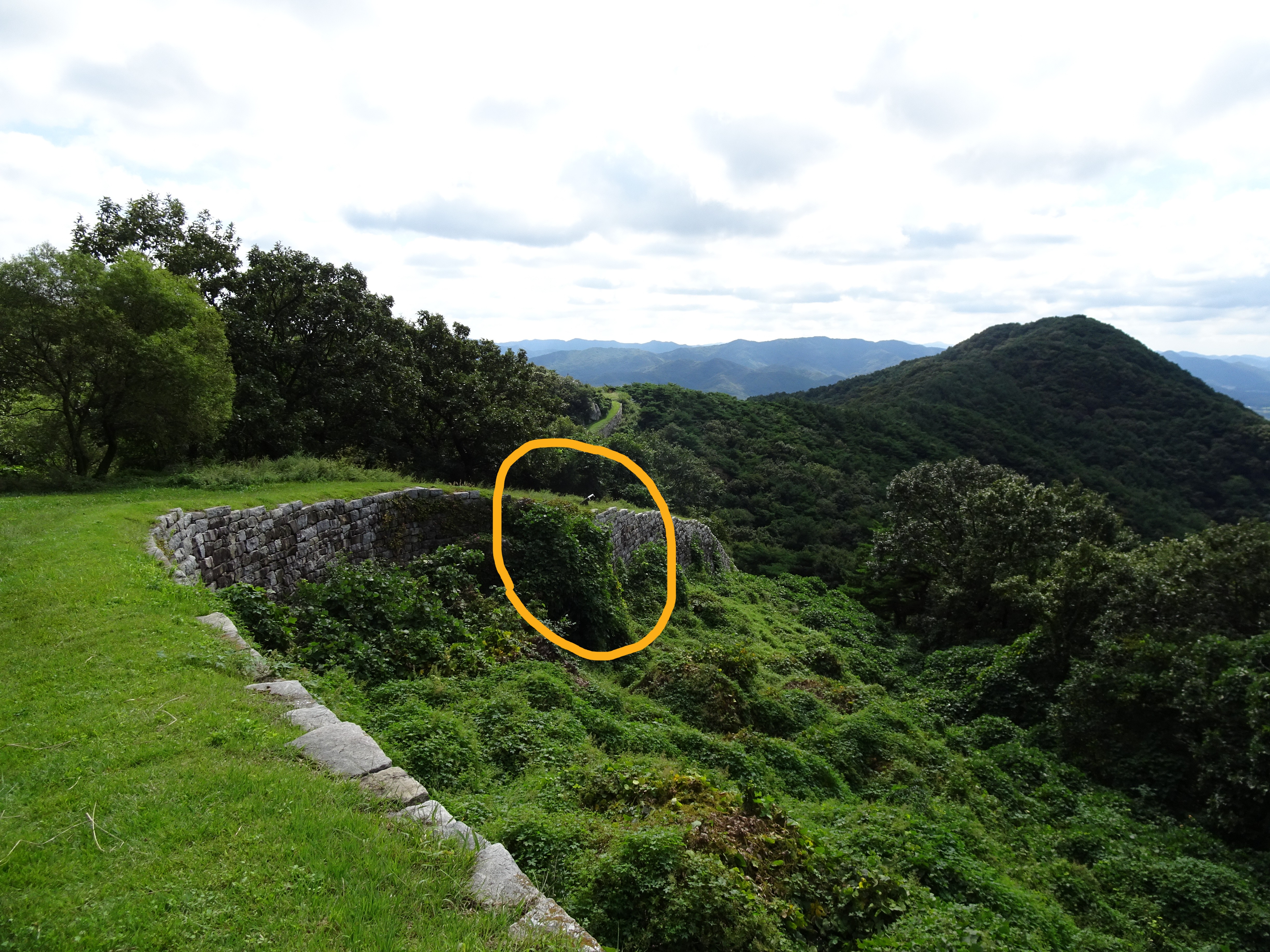 남문지 지나 다시 되돌아 본 모습, 임존성 성곽길이 훤칠하게 느껴진다.