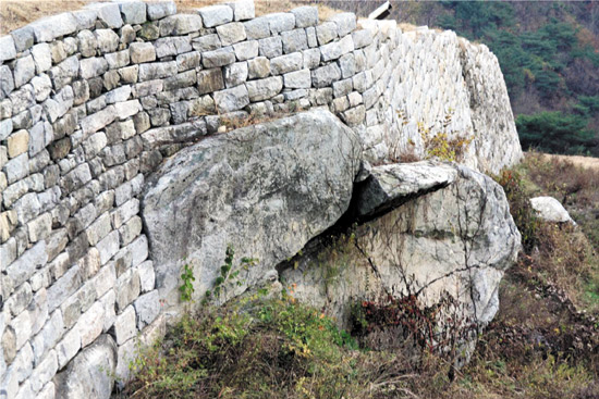 저게 지도상의 '묘순이바위'(성벽에 박혀있다고 함)이다.