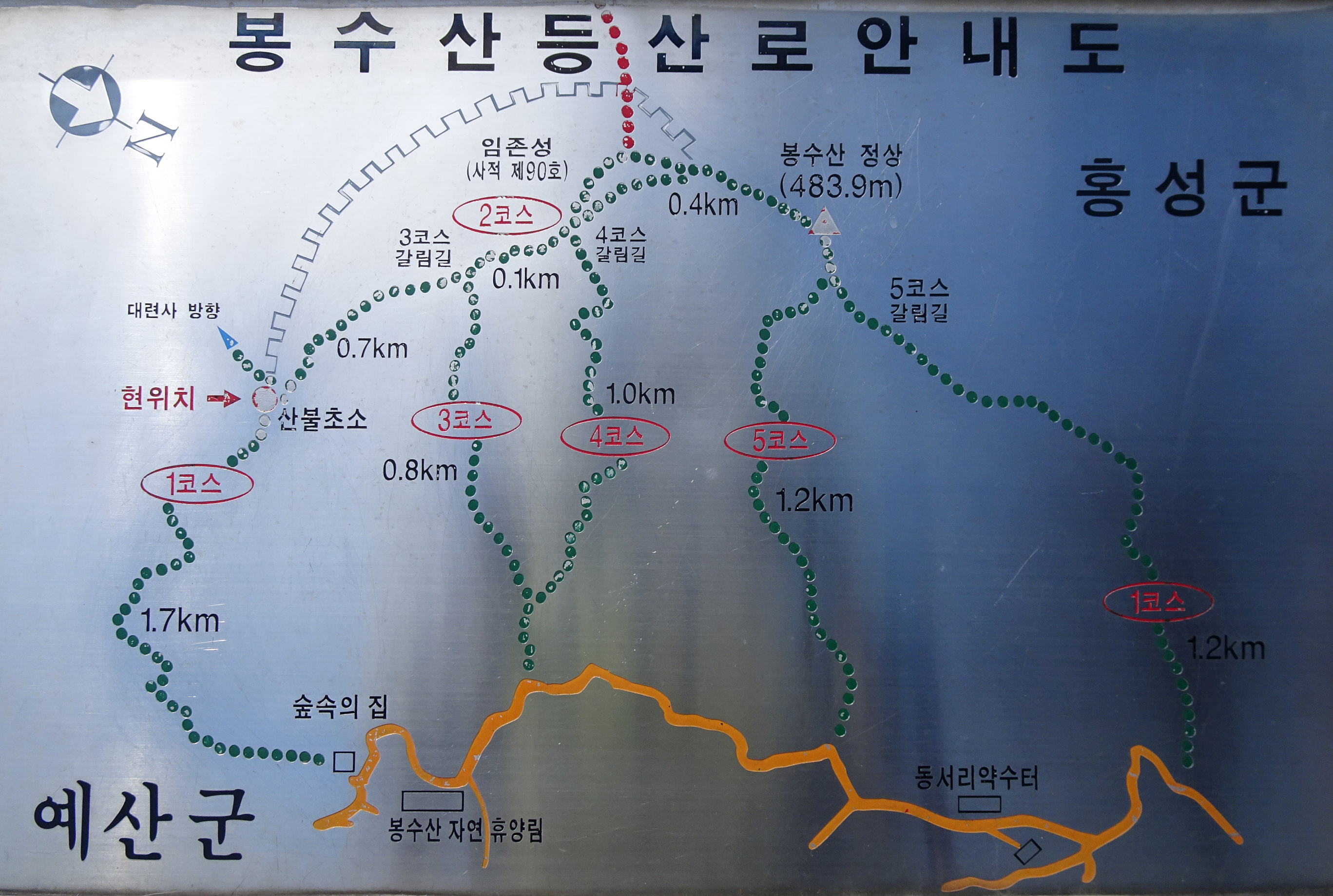 - 지도마다 코스 표기가 달라 헷갈린다. 우리는 수목원 쪽에서 올라 봉수산 정상을 찍고, 임존성 북서치에서 북동치까지 따라 걷고, 자연휴양림 쪽으로 내려왔다.