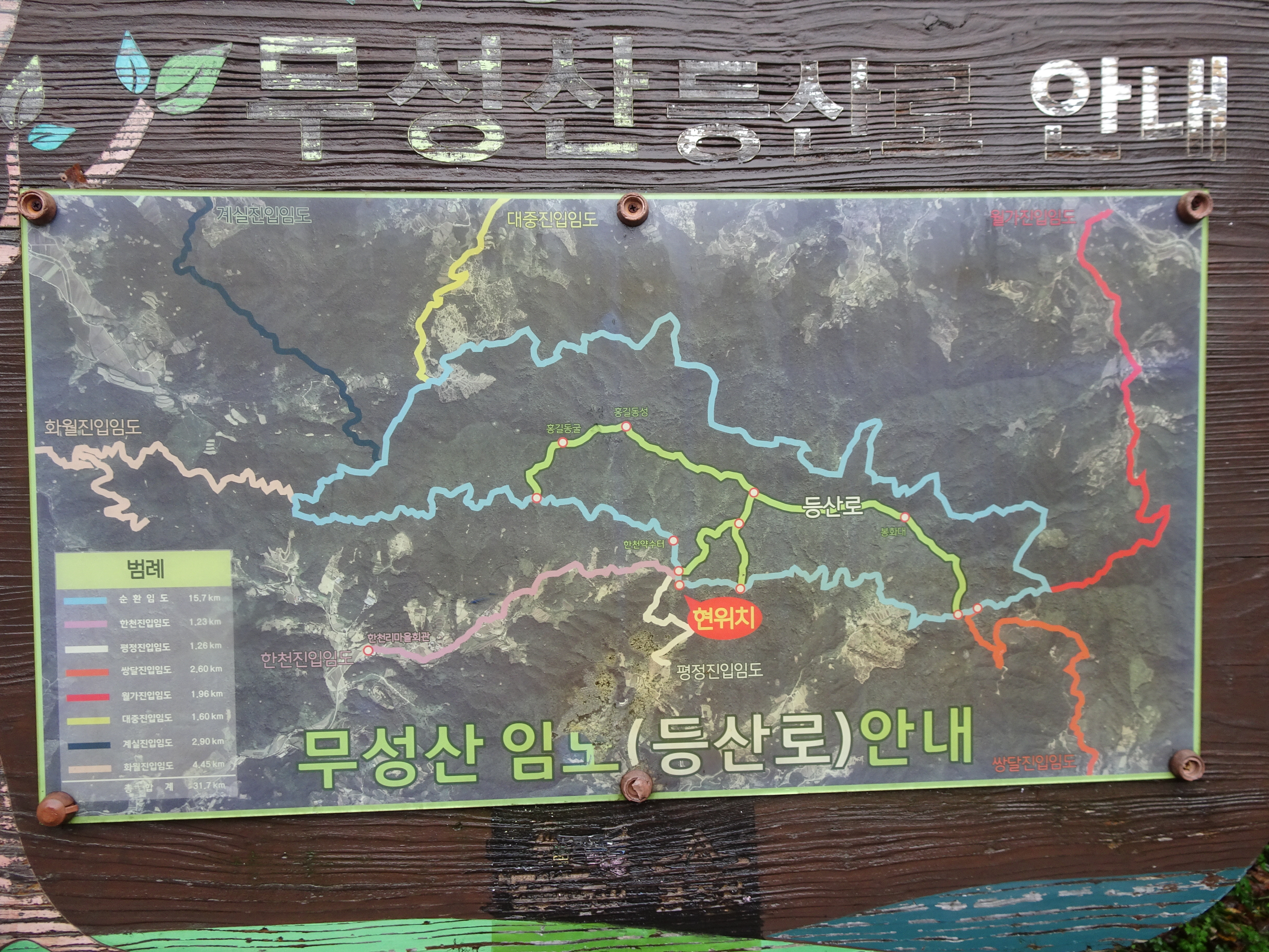 ■ 무성산 정상에서 홍길동굴을 거쳐 한천약수터로 내려오는 코스도 있는데, 흐린 날씨에 초행길인데다 들머리 찾느라 시간이 지체되어 급한 마음에 오름길을 되짚어 내려온 것이 조금 아쉽다.