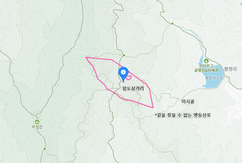 ■ 무성산은 사방팔방 임도가 많은데 한천약수터 근처까지 차로 오르면 무성산까지 금방 다녀올 수 있을 거라 생각하고 금오산을 다녀온 후 출발했다. 문제는...한천약수터는 내비에 검색은 되지만 경로가 끝까지 나타나지 않아 다른 산행기를 참고하여 '충남 공주시 정안면 평정리 산 85-5번지'를 입력했더니, 한천리 쪽이 아닌 평정리 이시골 쪽으로 안내해주는 것이다. 물론 이사골 쪽으로 가도 임도삼거리까지 차가 갈 수 있는 길인데, 이시골 지나서 길이 갑자기 좁고 가팔라져서 교행하기 힘들 거 같아 이시골에 차를 두고 임도삼거리까지 1.4km 정도를 걸어간 다음 산행을 시작했다. 우리가 올라가기를 포기한 지점을 조금 지나면 길이 다시 넓어지지만, 비포장 구간도 있고, 사이사이 배수로도 있어 이왕이면 사람들이 많이 다니는 한천리 쪽으로 접근하는 게 낫겠다. 최단코스로 가려면 내비 입력시 경유지를 한천리마을회관을 입력해서 가는 것이 우리처럼 난감한 상황에 처하지 않을 듯... (코스장님, 잘못이 아니에요!)