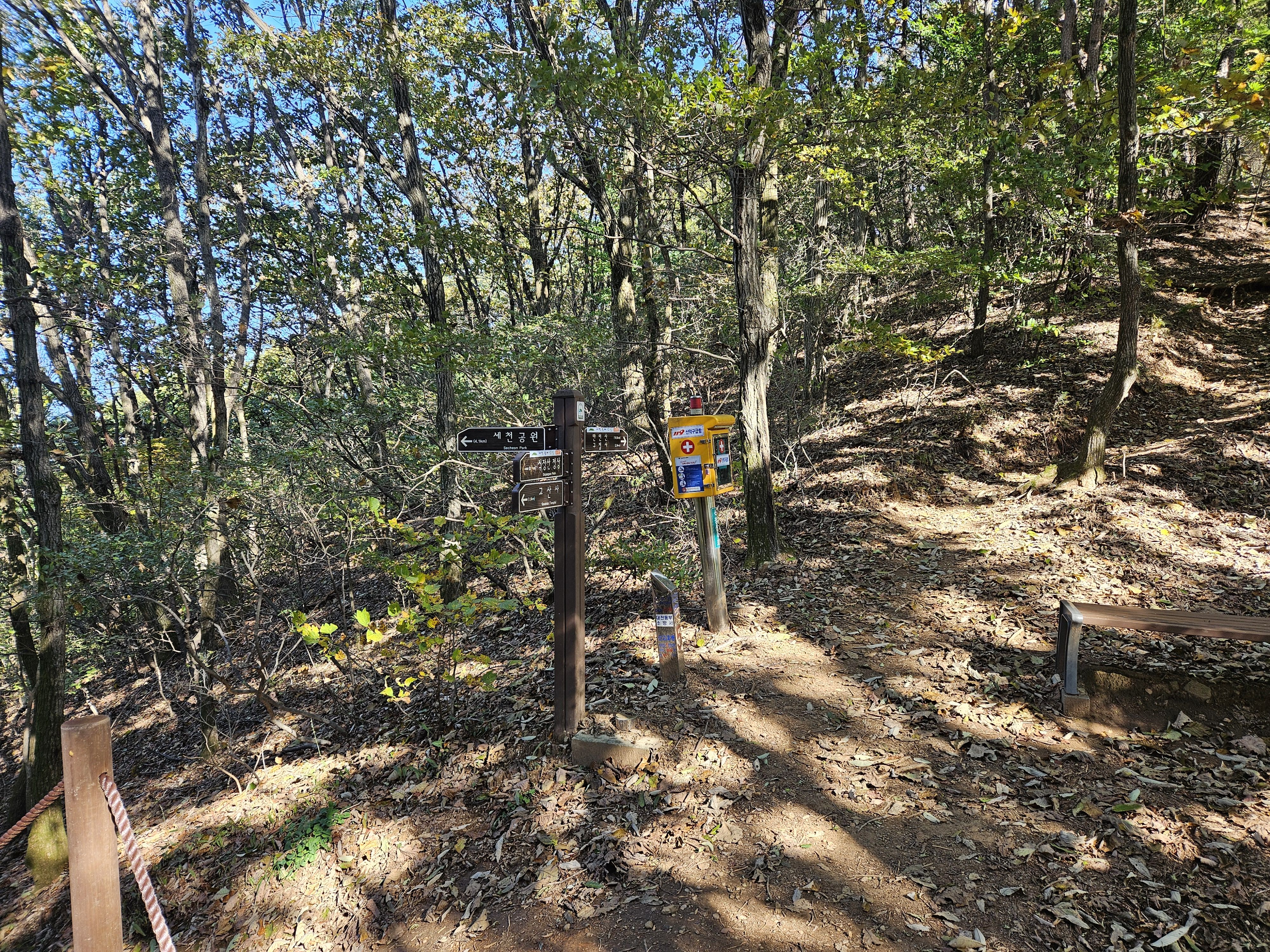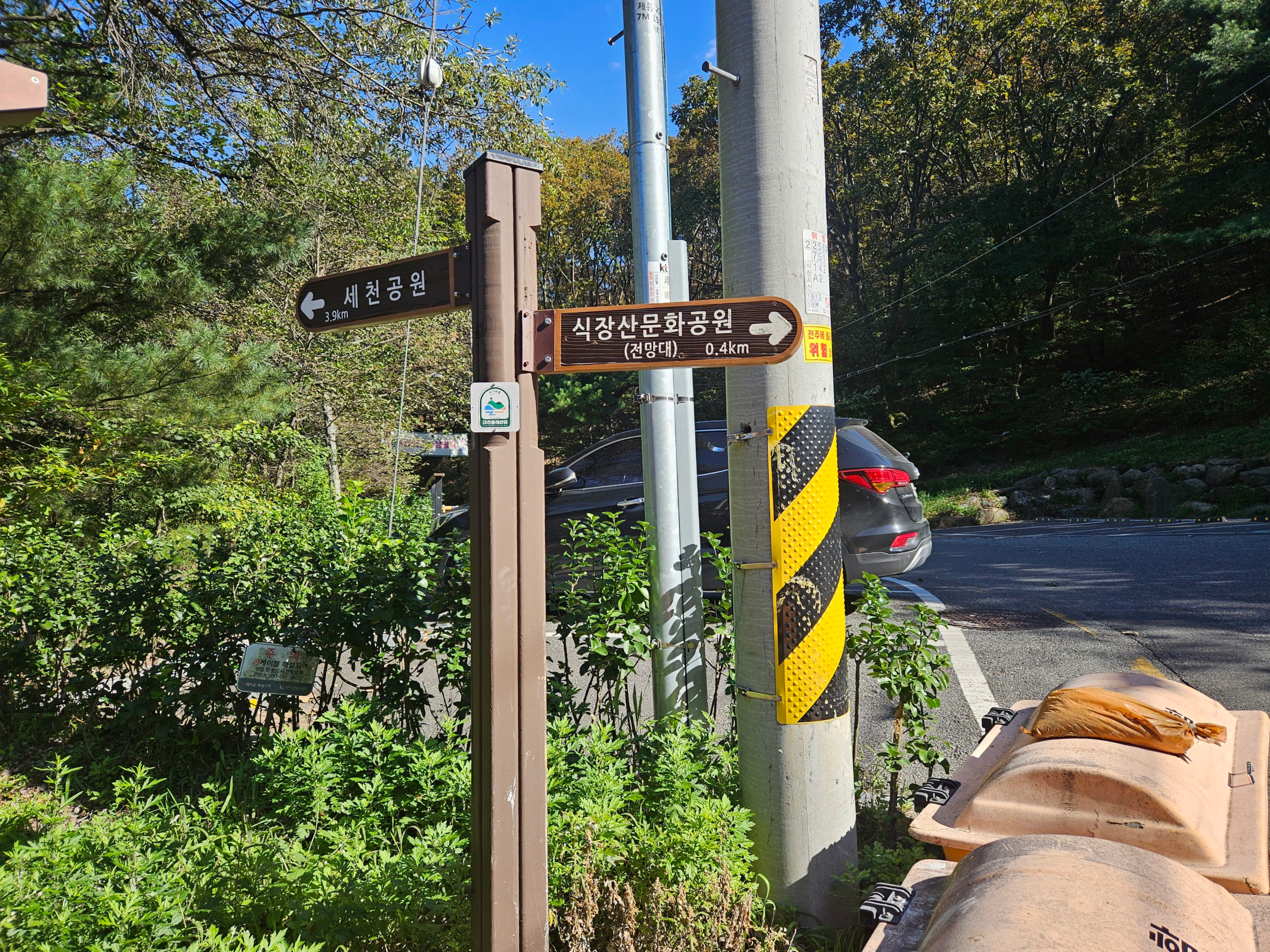 * 여기서 '세천공원/행글라이더장 쪽 침목뎨단으로 가면 헬기장, 식장루 쪽으로 이어지는데, 확신이 안서서 왔던 길을 되짚어 왔다.