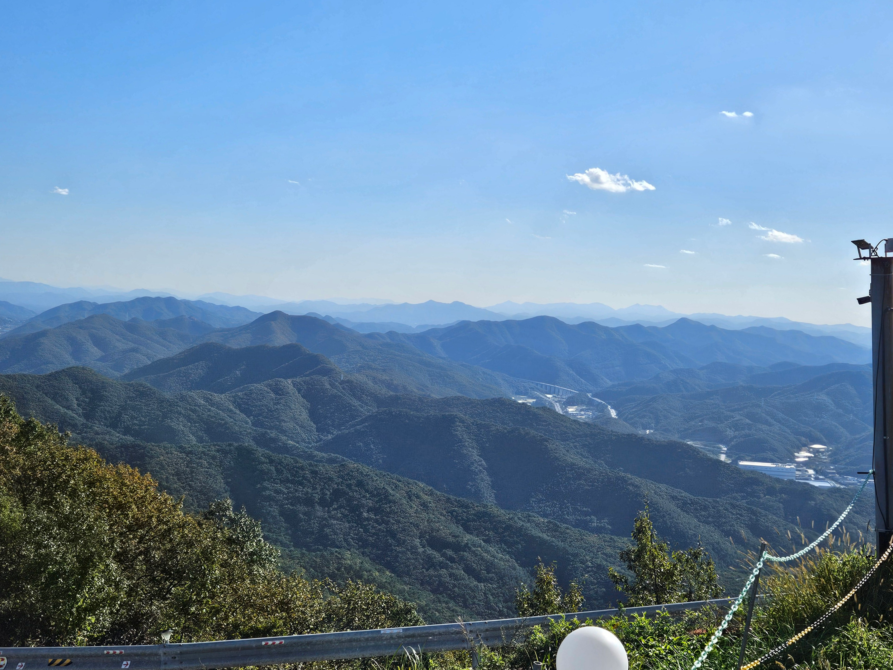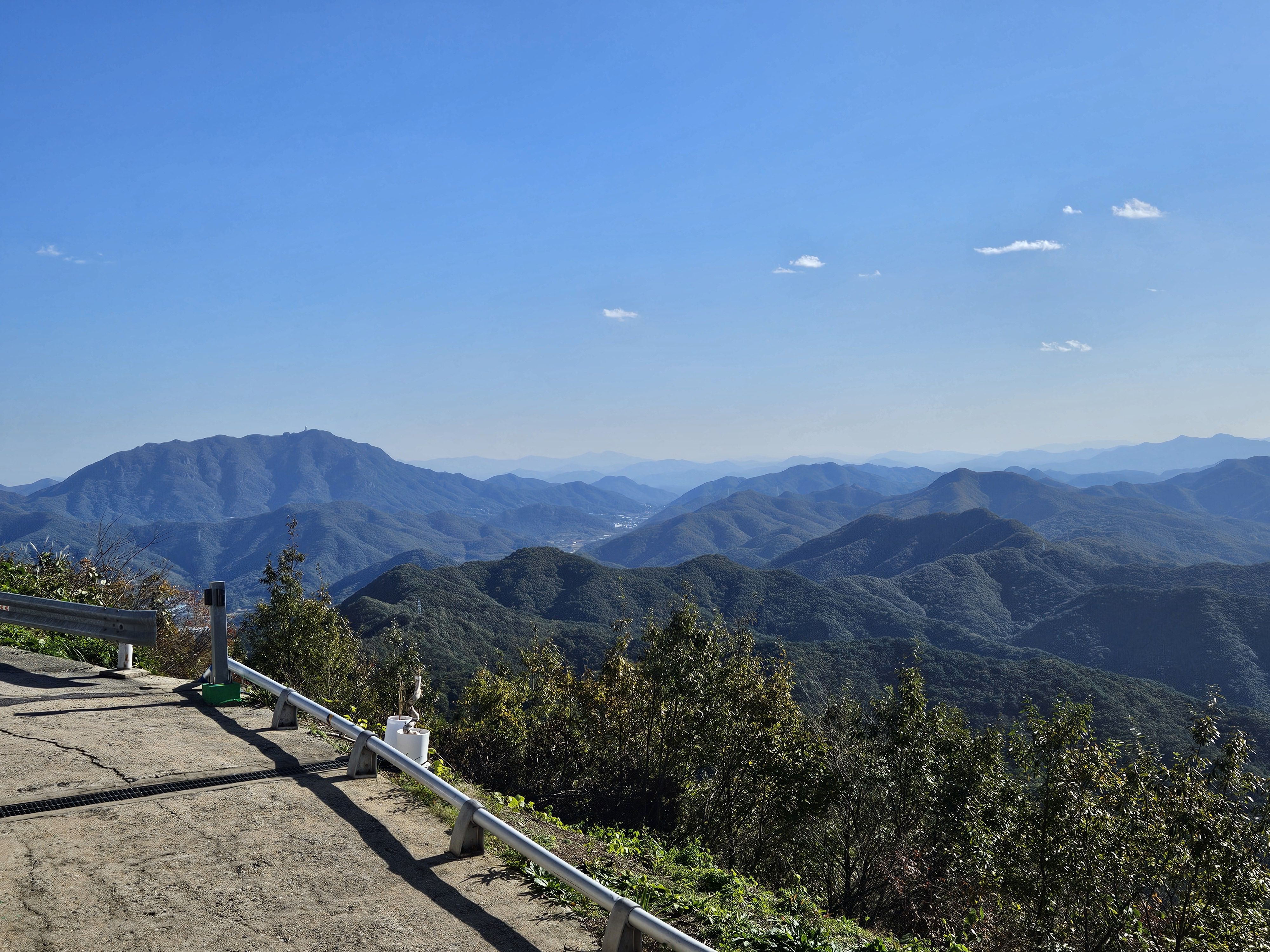 ■ 마지막 주차장에서 정상쉼터/카페까지 300m로 안내되어 있는데, 걸어가기에는 시간이 제법 걸린다(500m 이상인 듯?), 차로 가면 금방인데, 쉼터에 들어가려면 주차비(1시간 3천 원)를 내야한다. 그래도 속리산, 계룡산, 대둔산, 서대산... 360도 조망이 멋져 주차비가 아깝지 않았다.