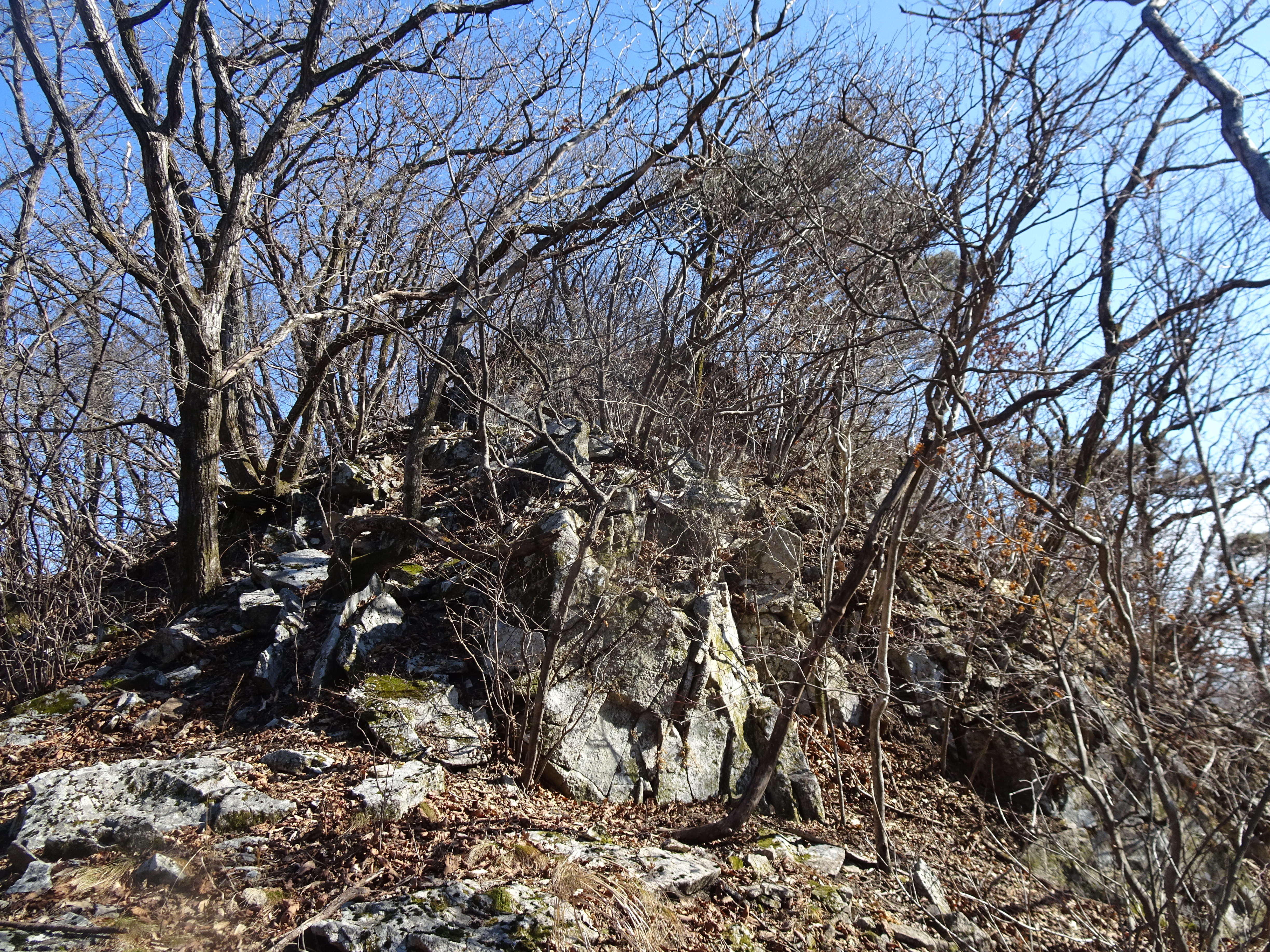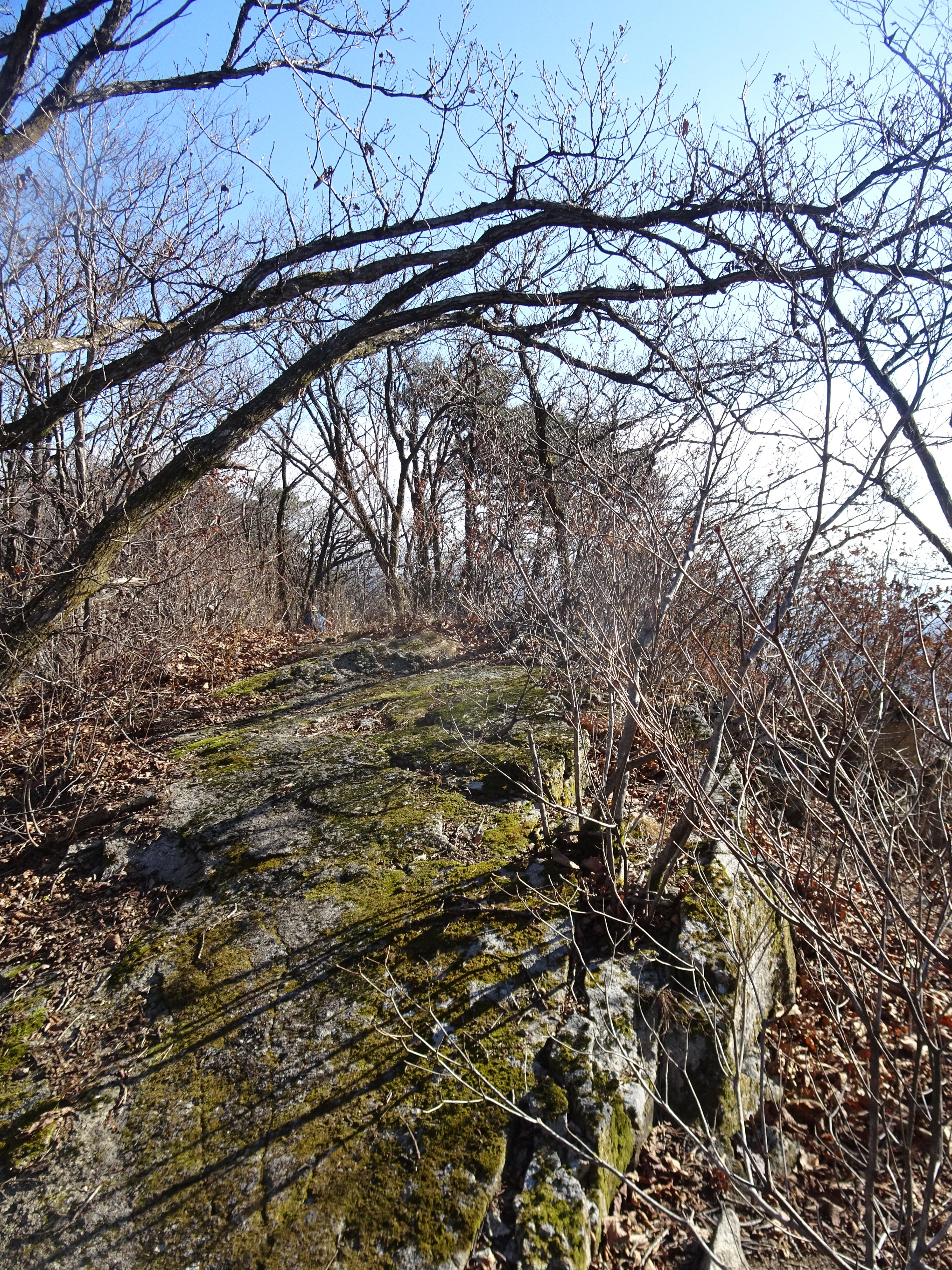 전망바위에서 바라보는 유학산 정상 쪽, 저 바위가 '신선대'인 모양이다.