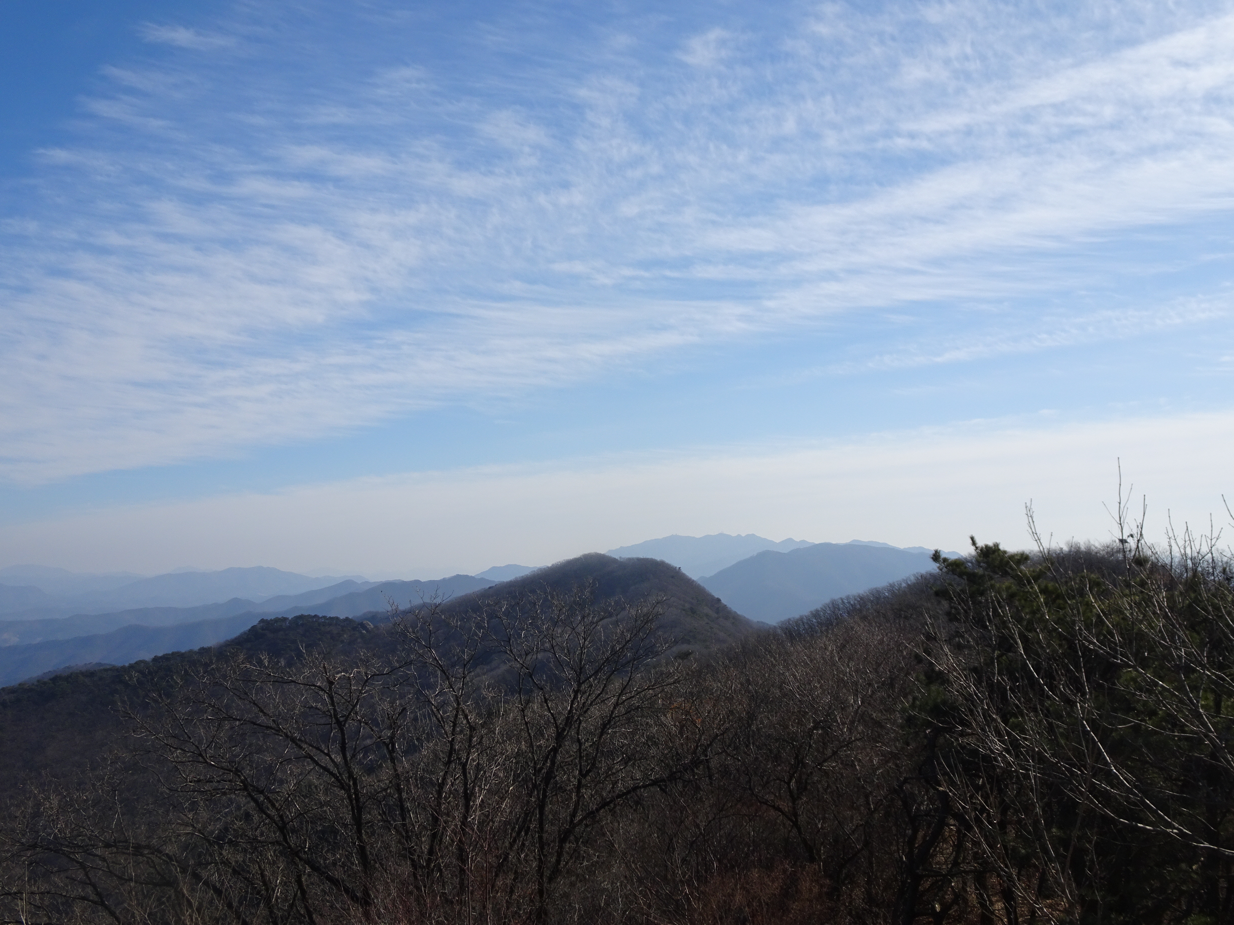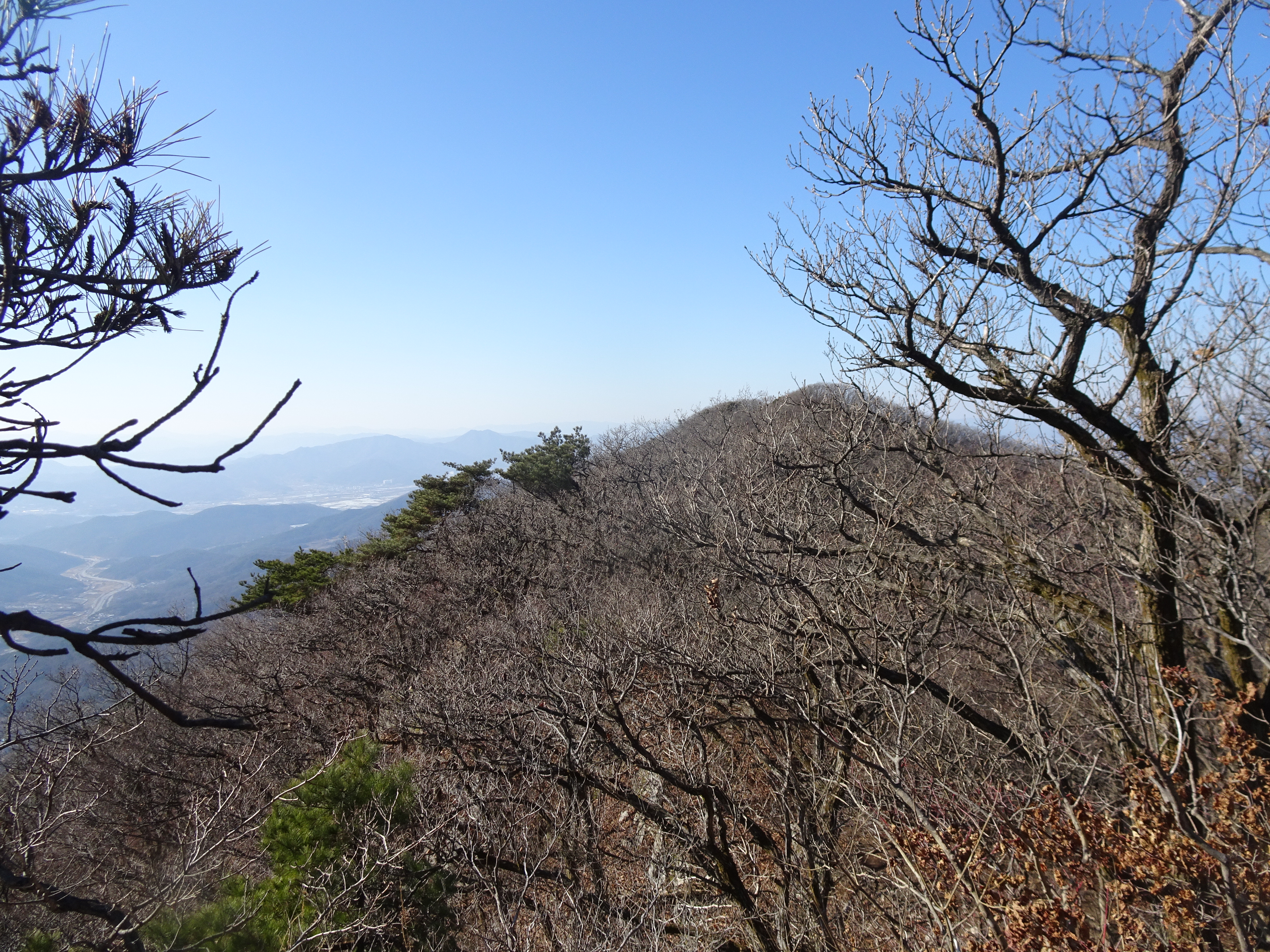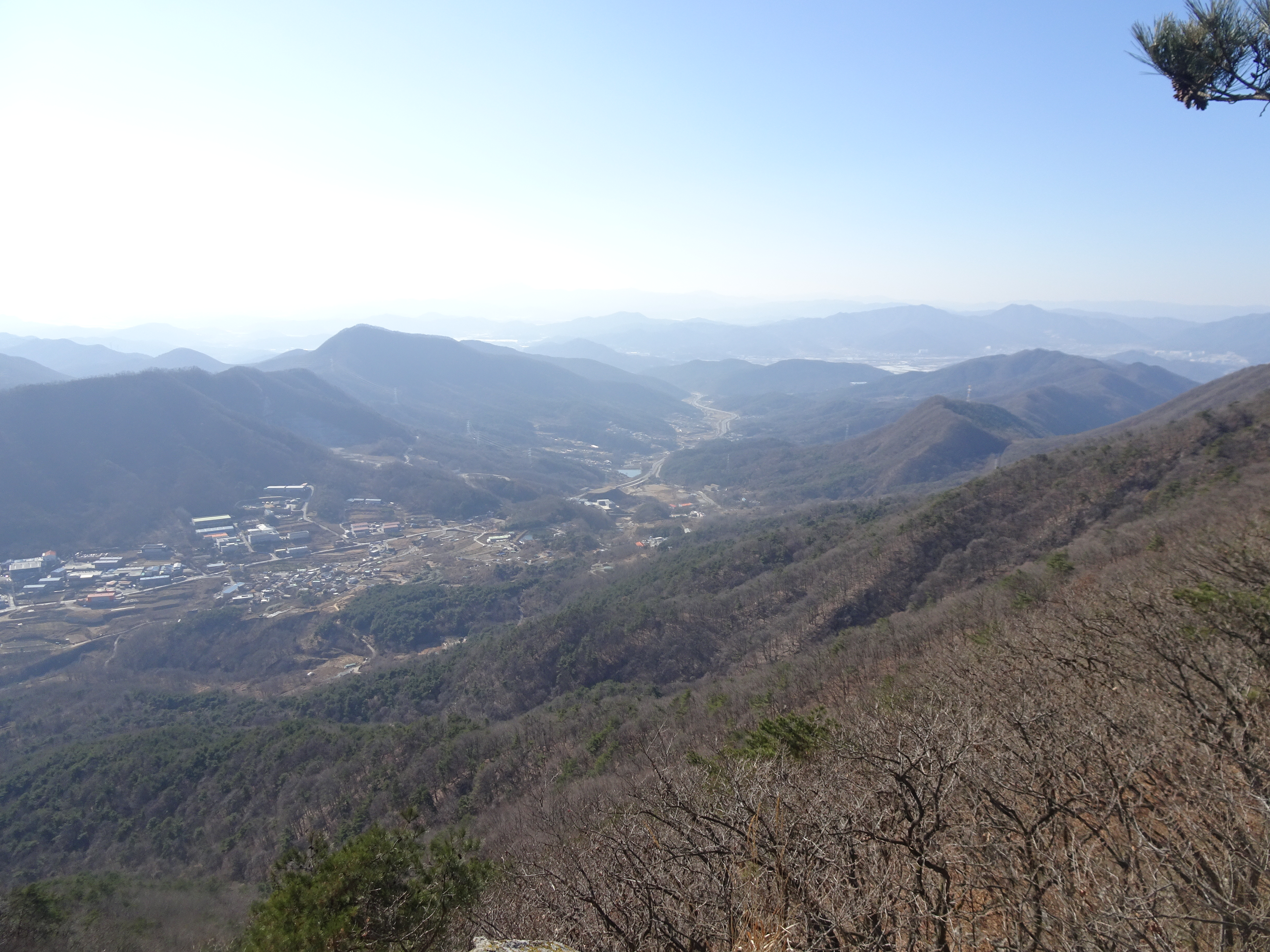 우리가 걸어갈 다부동 방향 능선과 그 너머 멀리 팔공산, 앞쪽 가산.