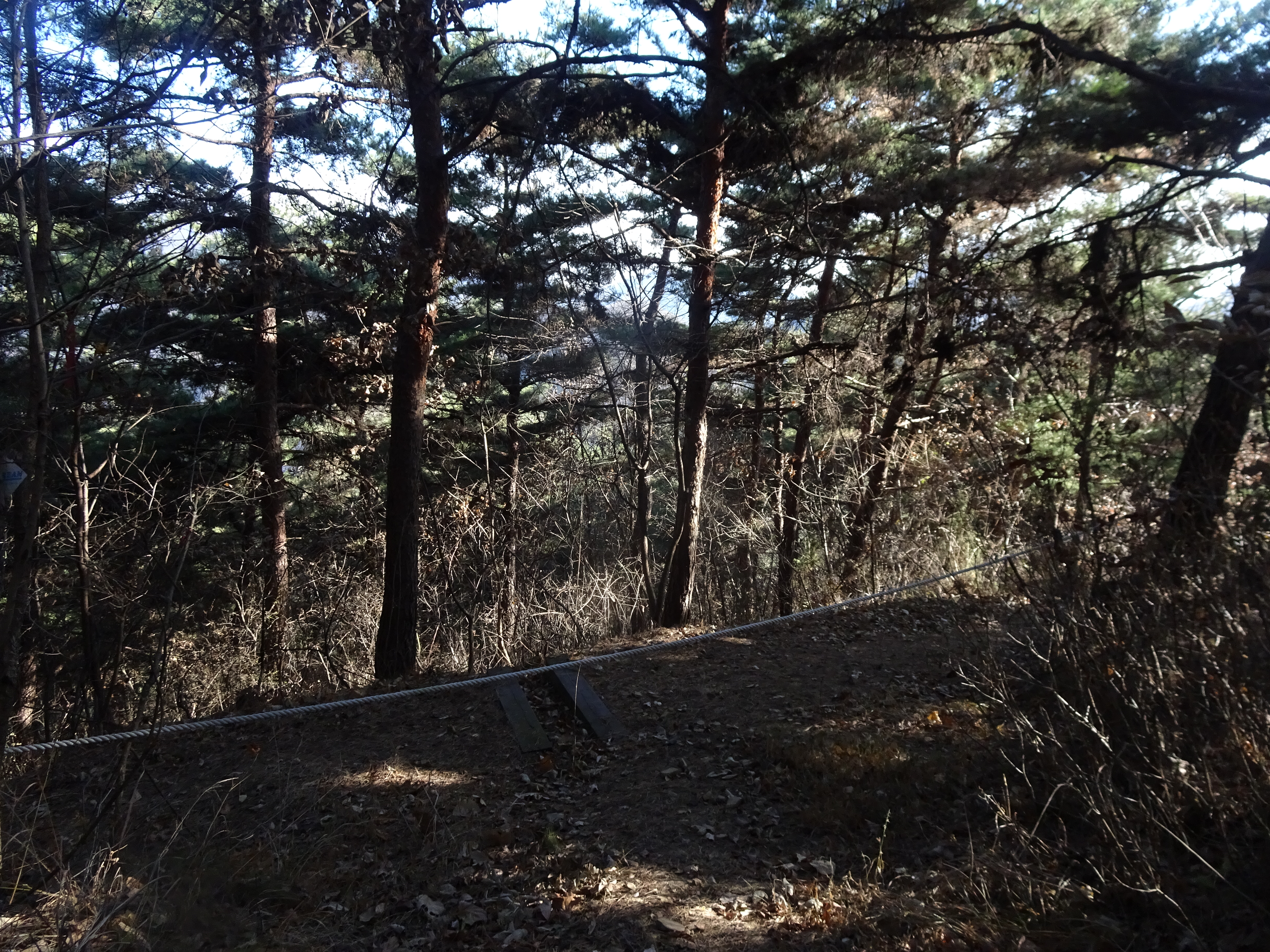 밧줄을 매어놓아 길은 왼쪽으로 열려있다. 우리는 지도를 따라 밧줄을 넘어 직진했다.