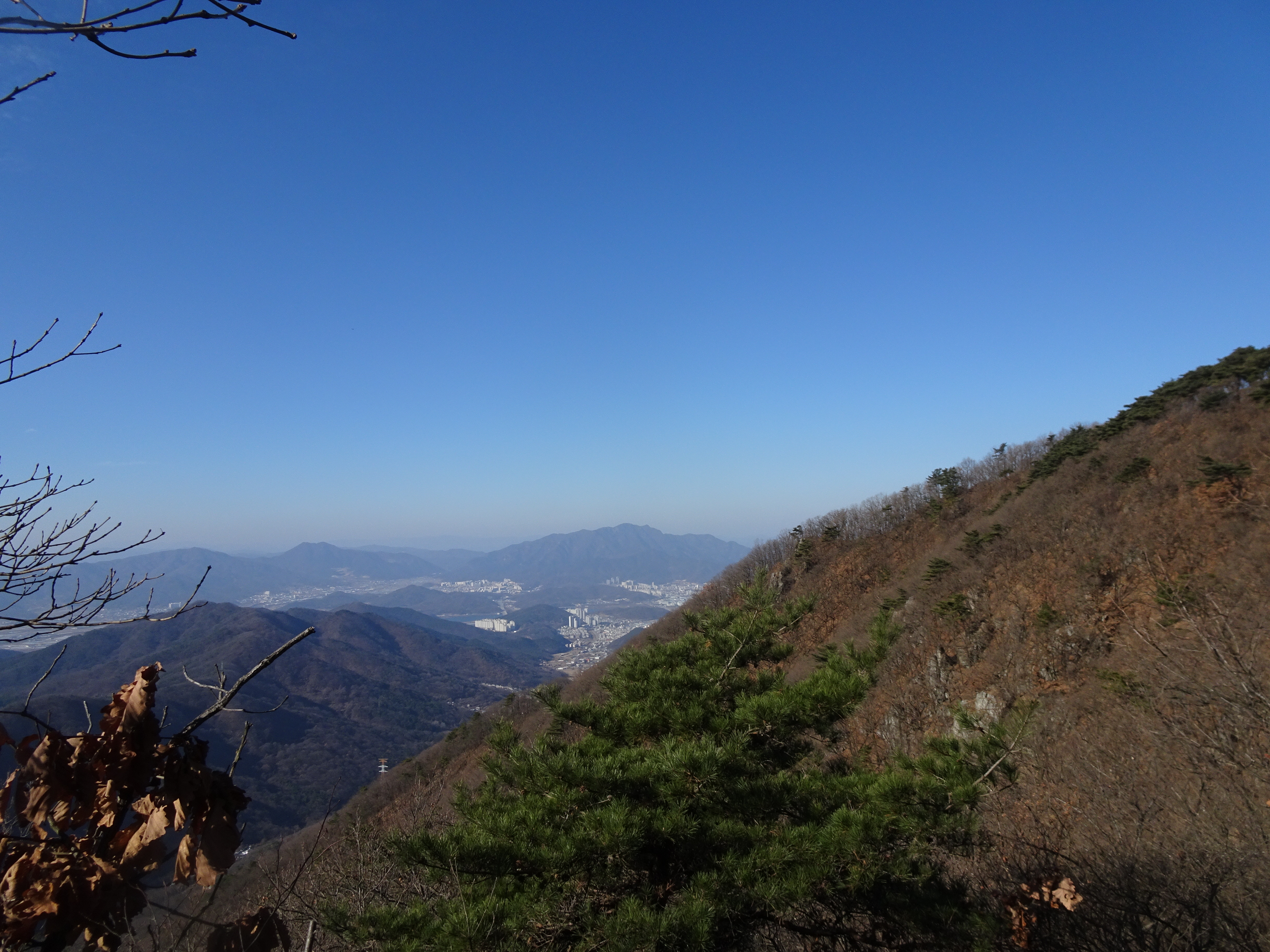 금오산 왼쪽 멀리 가야산이 흐릿...
