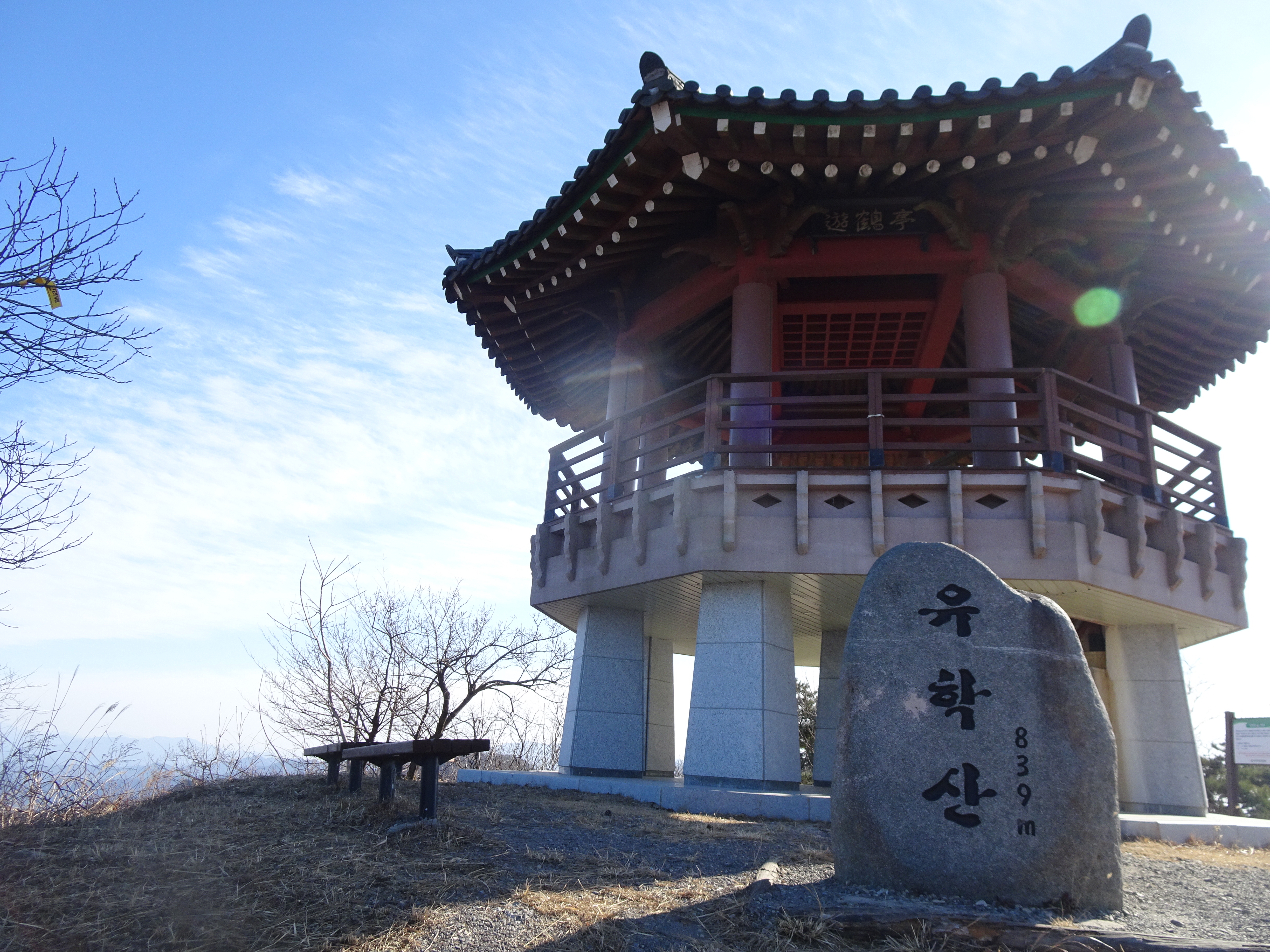 팔각정(유학정)과 유학산 정상석이 있는 839고지
