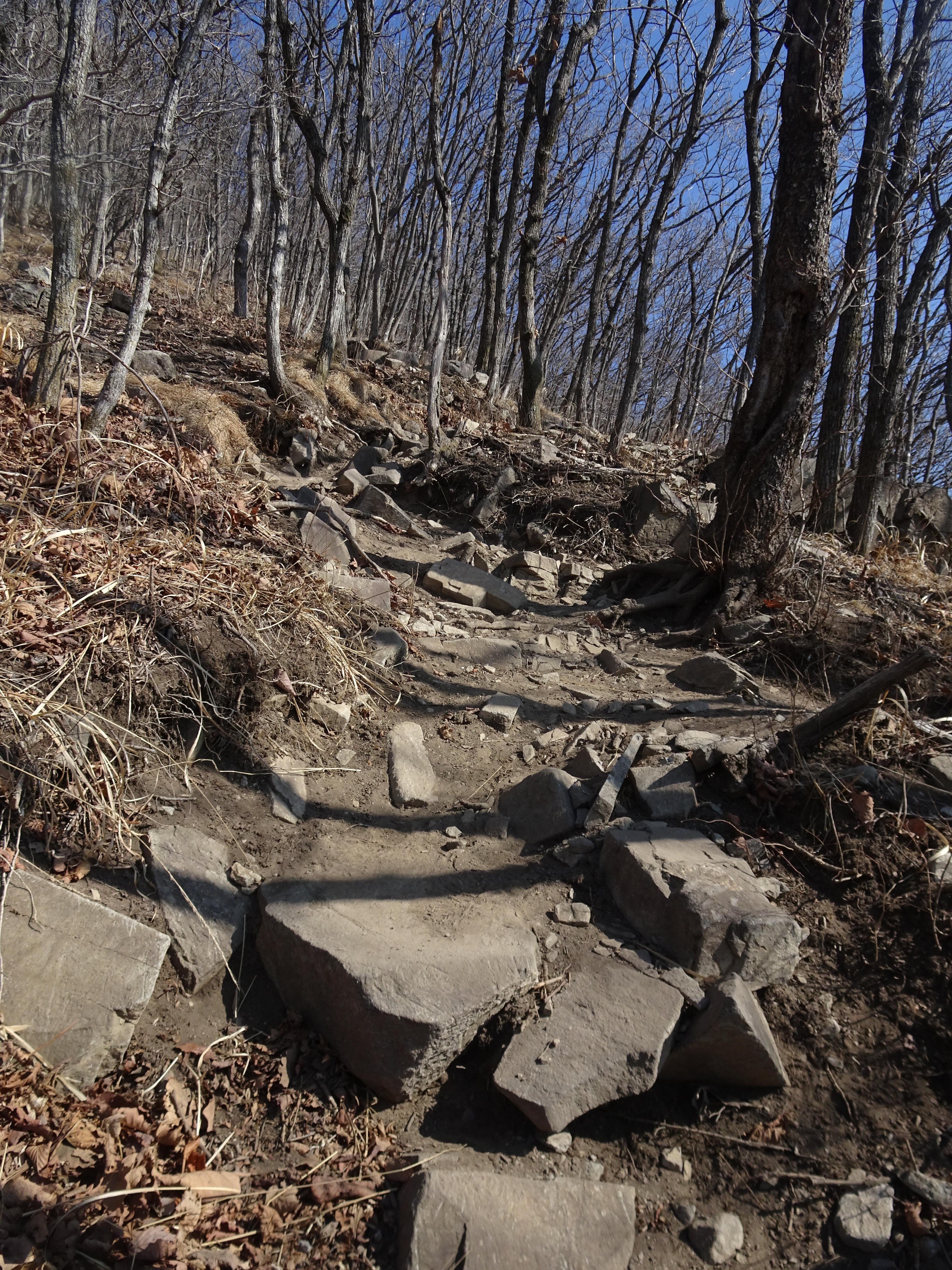 이 길도 올라왔던 길 못지 않게 가파르고, 크고 작은 돌들로 미끄럽다. (올려다 본 모습)