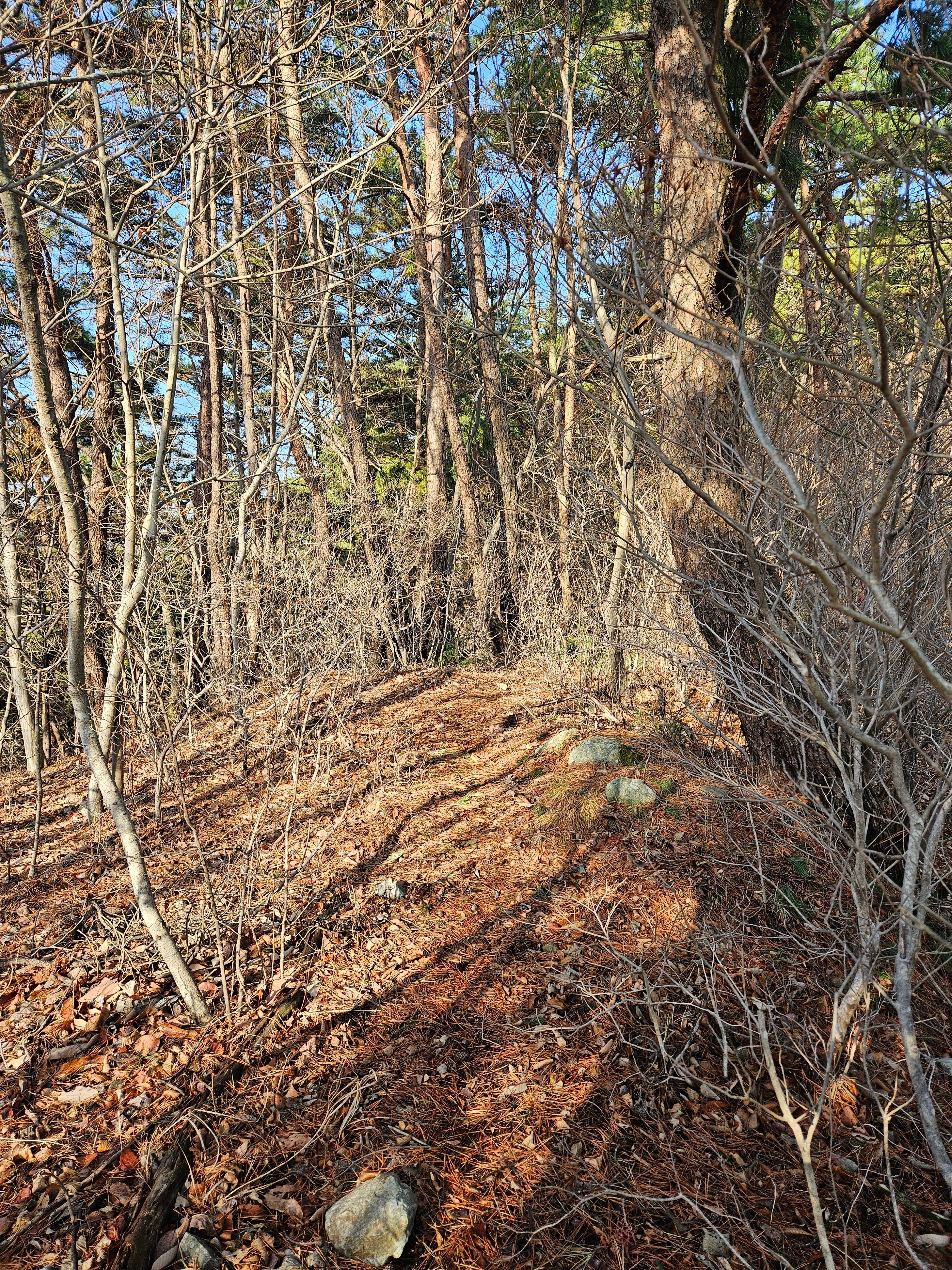 ■ 지난 구간에 이어 이번 구간도 오르락내리락... 그래도, 엊그제 내린 비로 촉촉해진 솔가리, 낙엽길이라 덜 미끄럽고 걷기 좋았다.