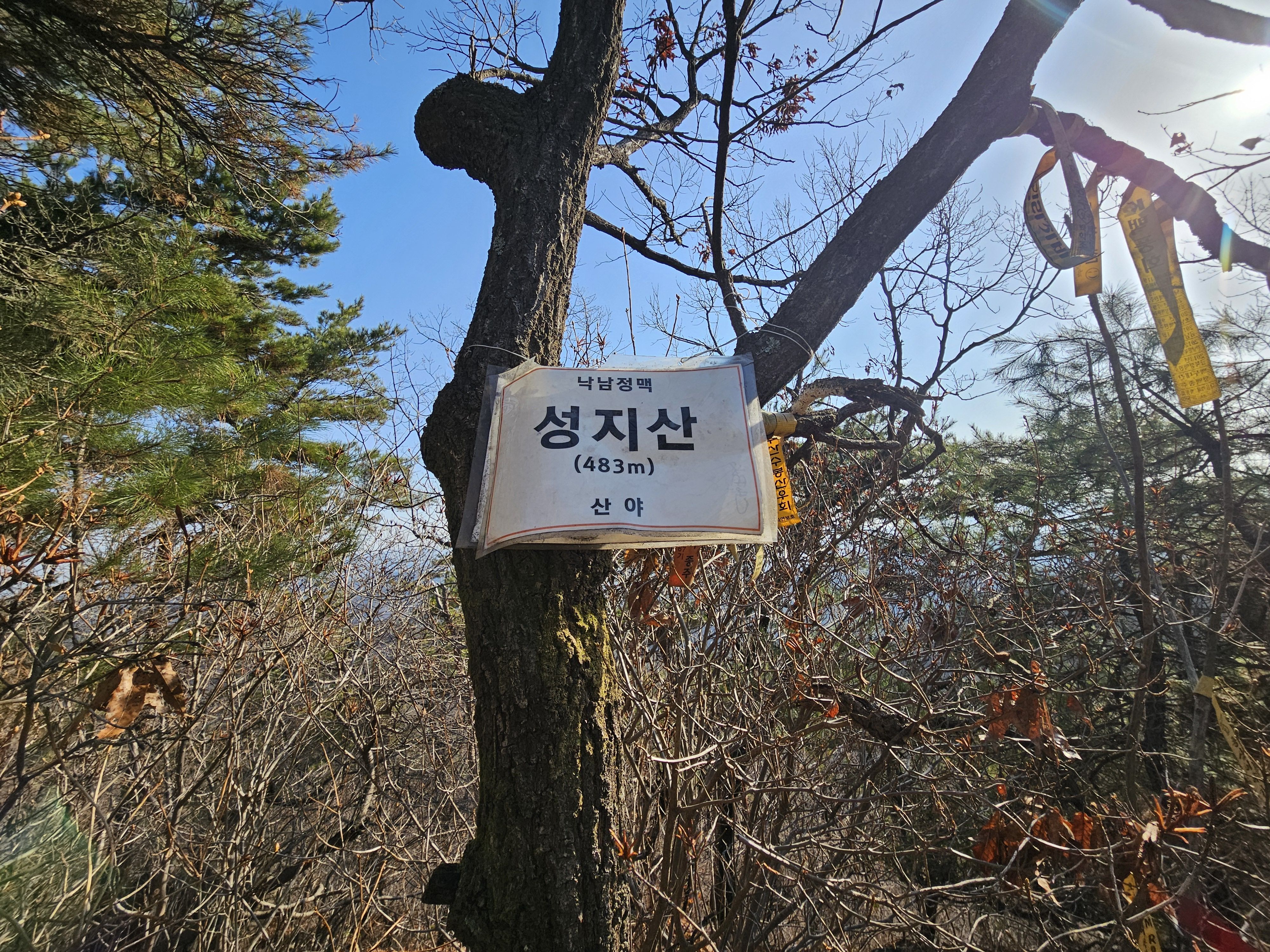 * 지도로 봐서는 여기가 459봉인 듯하고, 성지산(393m)은 더 아래 오른쪽에 있어야 하는데... 어느 게 맞는지?