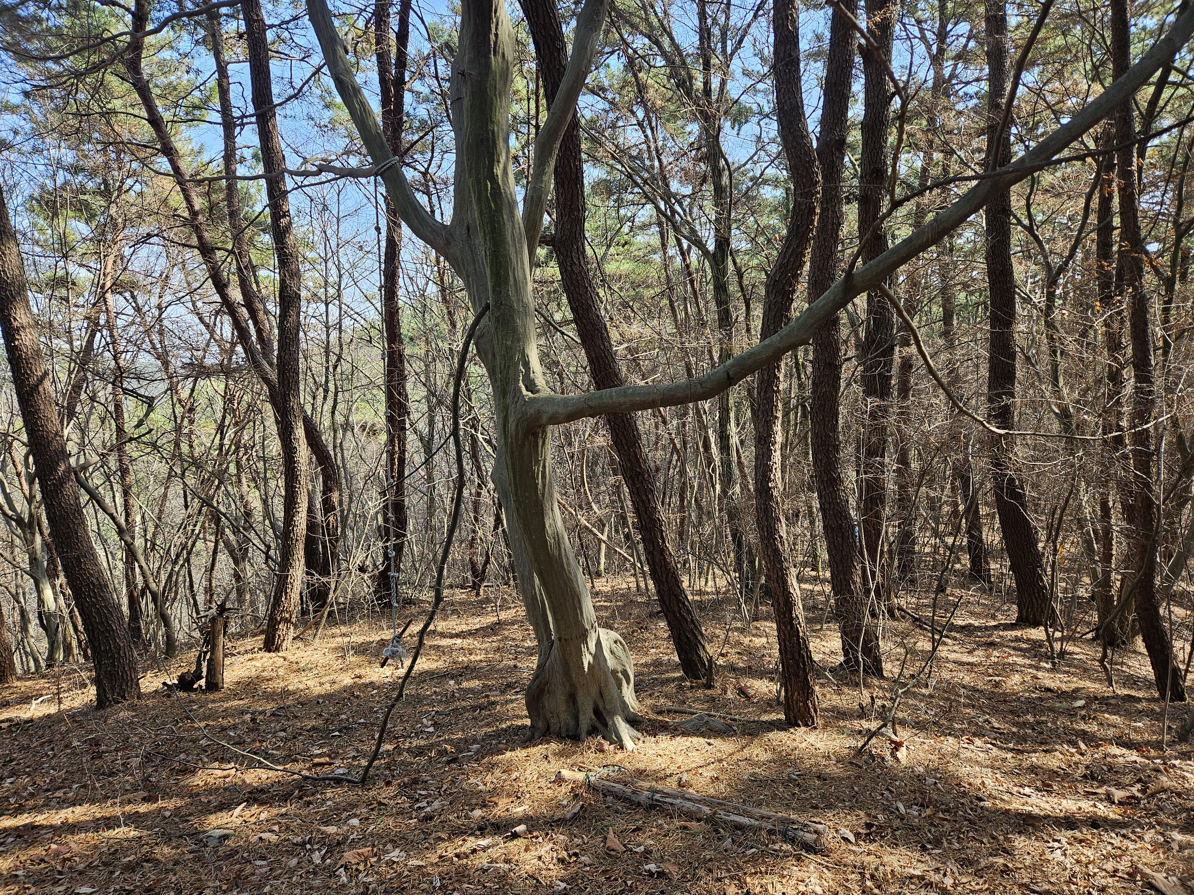 오래 된 밤나무 단지를 지나 왼쪽으로 꺾는다.